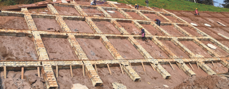 臨空面之間破裂土體的穩(wěn)定。這就是 錨索框格梁
